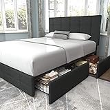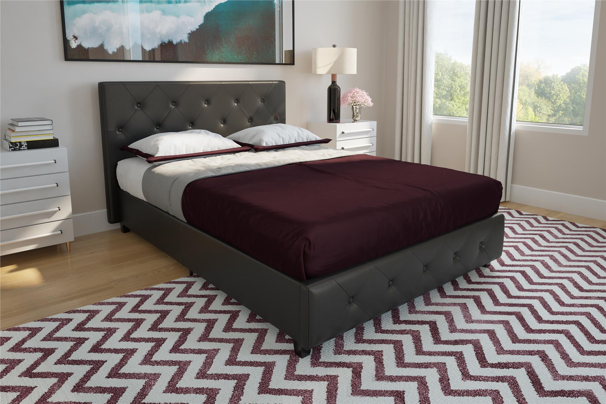 A bed with storage is a great solution for hiding all of the extra linens and seasonal clothes that won't fit in your closet. The bed is also very useful in all types of homes as it provides sleeping and storage space in one piece of furniture. Dhp cambridge upholstered linen platform storage bed 5. The dhp dakota platform bed (upholstered) with storage drawers is an ideal platform bed with storage for any busy professional who lives in a small space or a condo. Includes drawers for additional storage. Give yourself the bed you deserve! They will also accommodate someone who wants a bed that is trendy without having to give up on storage. They are available in gray linen or black faux leather upholstery. This contemporary and chic bed frame is designed with graceful button tufted diamond patterns on both the headboard and footboard and. Contemporary bed with lavish, padded faux leather upholstery and button tufted diamond detailing. The dhp dakota upholstered platform bed is the perfect amount of contemporary luxury to transform your bedroom décor. Metal side rails for guaranteed stability and durability. Button tufted upholstered platform bed features a lavishly padded faux leather upholstered headboard and foot board for a contemporary chic look.