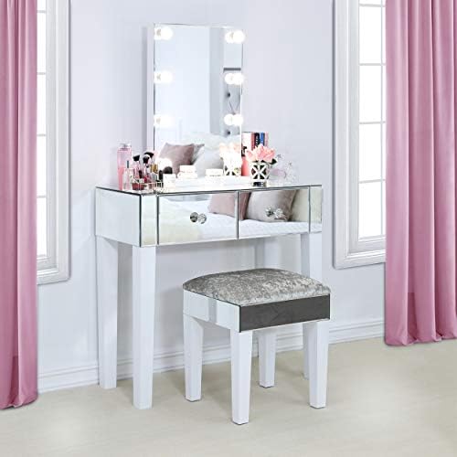 Dressing table with mirror white high gloss dressing table. Vanity table with lighted mirror, makeup dressing table with 10 lights and 5 drawers,detachable top and 360 rotation mirror, modern dresser desk vanity table for bedroom (white) 4.2 out of 5 stars. The sturdy wood construction with a smooth white finish brings graceful style to your existing home decor. 3 out of 5 stars. 55.5'' h x 35'' w x 15.5'' d;